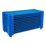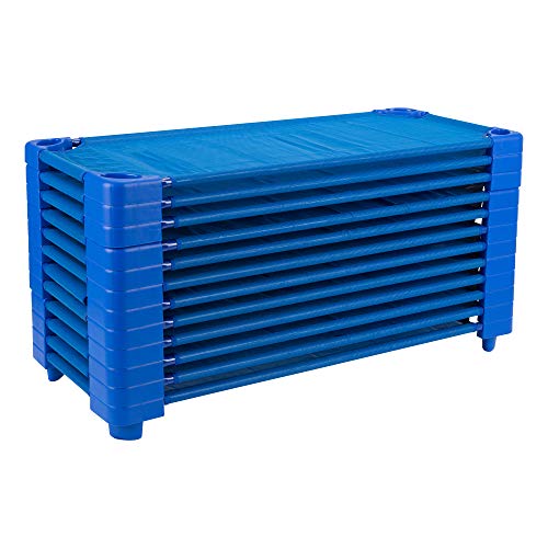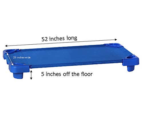 Sprogs Heavy-Duty Stackable Standard Size 52″L Daycare Cots for Kids and Toddlers, Stacking Preschool Classroom Kids Cots for Sleeping, Resting, Naptime, Pack of 12, Blue
